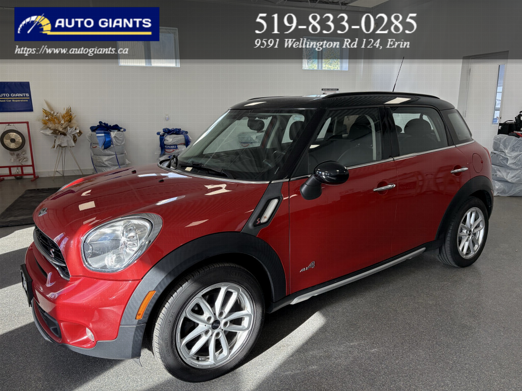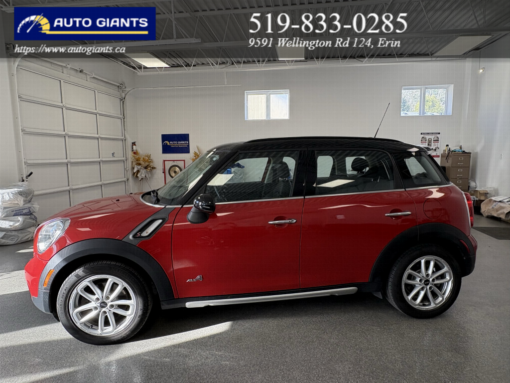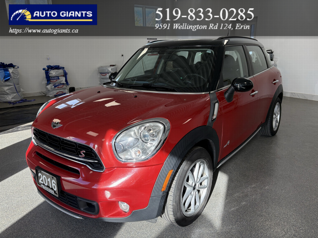 The 2016 MINI Cooper S Countryman in bold red delivers the perfect combination of style, efficiency, and everyday dependability. Featuring all-wheel drive and an automatic transmission, this hatchback is built to make every drive â commute or road trip â genuinely enjoyable. The exterior stands out with alloy wheels and a sunroof/moonroof, giving it a polished and purposeful road presence. Step inside to a refined black interior offering leather or leatherette seating, heated front seats and air conditioning, making every journey comfortable from start to finish. Designed with Canadian winters in mind, it comes with heated seats and heated mirrors to keep you comfortable no matter what the season brings. This vehicle is packed with technology including SiriusXM satellite radio, Bluetooth connectivity. Safety is covered with electronic stability control, ABS brakes, giving you and your passengers added confidence on every drive. Everyday conveniences like keyless entry and push-button start make life that much easier. Reliable, stylish, and great value â the 2016 MINI Cooper S Countryman ticks all the right boxes. Don't miss out. Contact us today to schedule a test drive and make it yours.